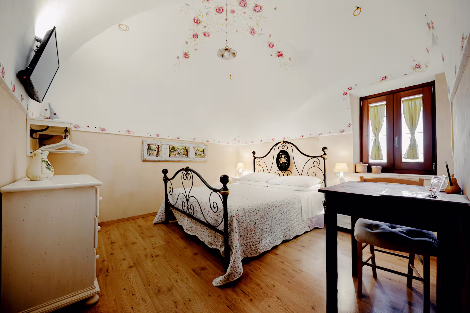 Le camere, disposte su due livelli, hanno la caratteristica di essere estremamente curate nei dettagli e tutte differenti tra loro, pur mantenendo un’omogeneità di stile e arredamento.
